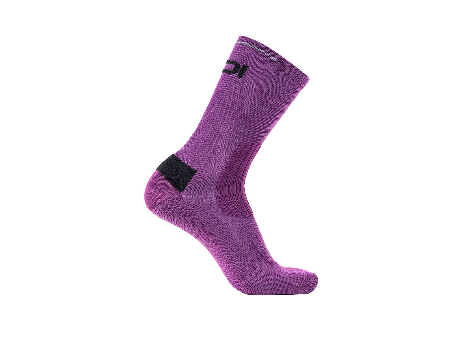Skarpetki kolarskie wykonane z poliestru oraz połączenia poliamidu z elastanem. Wzmocnione na pięcie oraz w okolicy placów. Specjalna wstawka na podbiciu stopy dla poprawy komfortu użytkowania. Wysokość mankietu 20 cm.