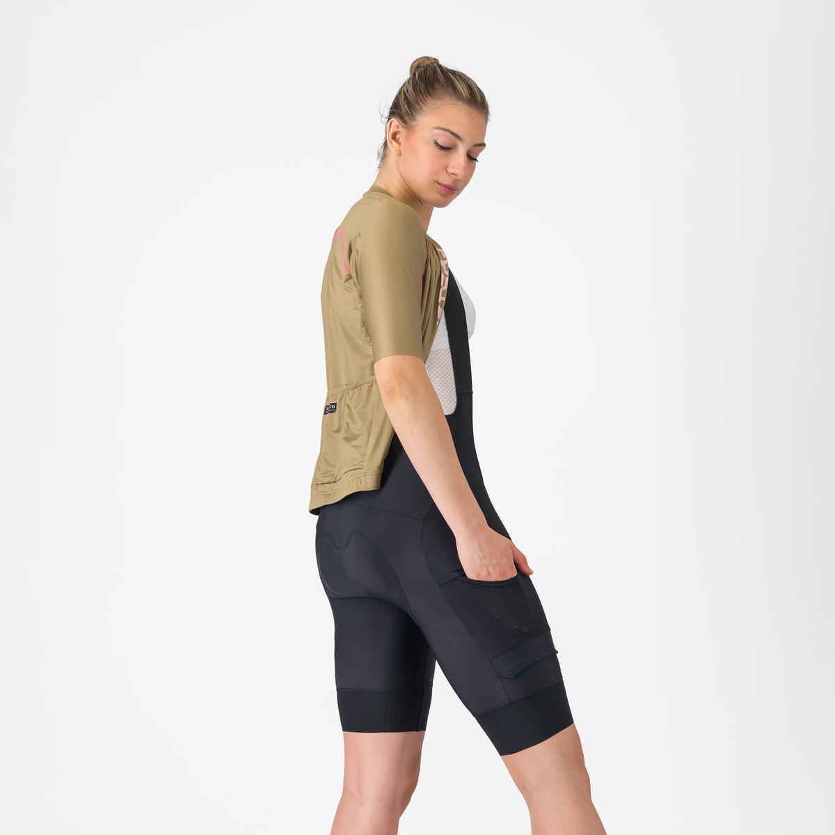 Dasmkie podenki kolarskie wykonane z materiału Affinity Pro Lycra® po wewnętrznej stronie nóg, która zapewnia bardzo dobrą rozciągliwość. Tkanina Vortex BLC na nogawkach dla poprawy aerodynamiki. Taśmy Giro4 zapewniają komfort i utrzymują spodenki w odpowiednim miejscu. Szelki wykonane z siateczki dla poprawy wentylacji. Dwie boczne kieszenie cargo na nogawkach oraz dwie tylne kieszonki na szelkach. Wkładka: Kiss Air2 Donna. Sugerowany zakres temperatur: 15-35 st. C. Waga: 188 g (M).